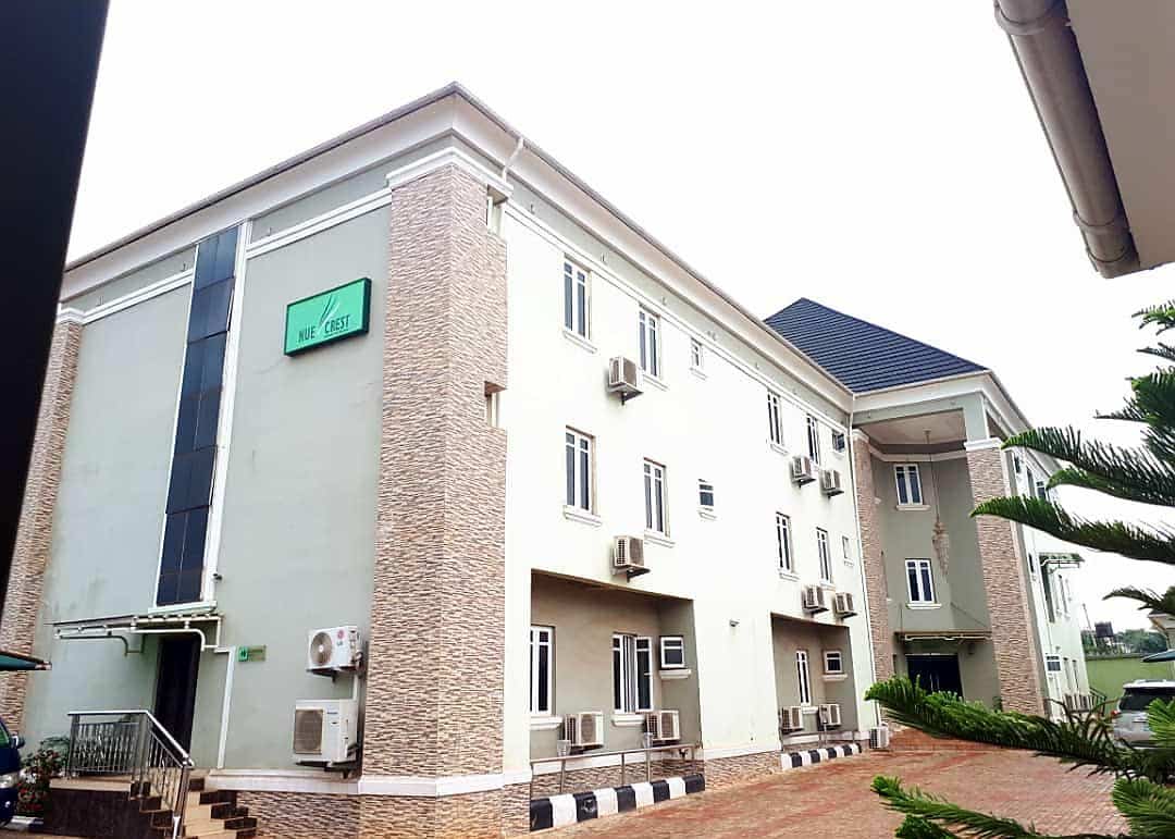 Book a Crest Suite Room in Nue Crest Hotel in Trans-Ekulu, Enugu State, Nigeria. Nue Crest Hotel is an affordable hotel located2 Ezechime Street, Trans-Ekulu, Enugu, Nigeria. The hotel offers comfortable accommodation to guests and is only 2 km from Enugu Zoo The nearest airport is Akanu Ibiam International Airport, which is a 23 minutes drive away. Guests will enjoy the quality of food prepared at the on site restaurantEach room at Nue Crest Hotel has a spacious bathroom, standard-sized bed, TV set, refrigerator, study desk and chair, bedding items, soda, work desk and air conditioner. Also available at the hotel are free WiFi, a restaurant, free parking, a conference facility, on guard security personnel, stable electricity and a bar