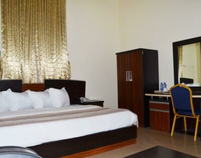 Book a Deluxe Room in Residency Hotel Guzape Abuja in Guzape, Abuja Nigeria.RESIDENCY HOTEL ASOKORO EXTENSION ABUJAl is a4-Star hotel located at(Plot 740 Nasir El-Rufai Crescent, Asokoro Extension Guzape Hills (5 minutes away from city center), near COZA Church . It is a twenty-minute walk from the big church. It is one of the top hotels in Abuja due of its unbeatable price, easy online booking management and free Wi-Fi availability in all areas of the premises.Residency Hotel has a lot of rooms all with modern furnishing. Room categories include the Double Room with 1 king size bed, Double Room with 1 full bed, Single Room, Executive Suite. Some rooms have balconies overlooking the city. Each room features a spacious bathroom, cable connected Flat-screen TV sets, air conditioners, free Wi-Fi, barbecue and so much more. Executive Suites have 1 king size bed and 1 sofa bed for the living room.