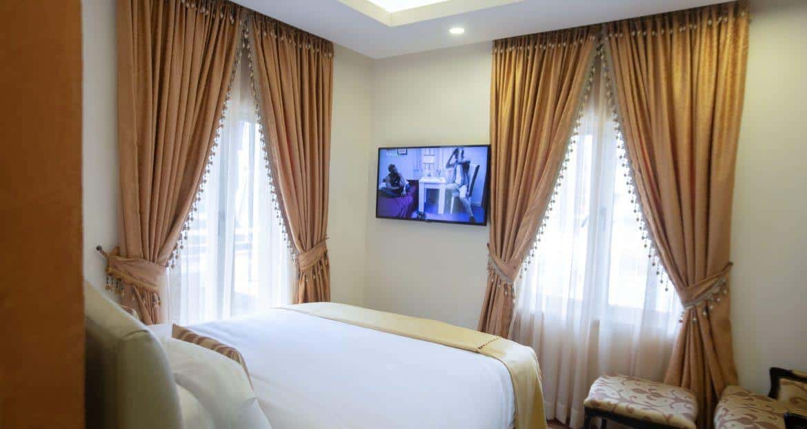 Book a Diplomatic Room in Catherine Villa in Victoria Island, Lagos State, Nigeria. Nested in the heart of Victoria Island, Lagos, Nigeria, Catherine Villa is a place where luxury meets affordability, and the quality of service is never compromised. Located at 216 Etim Inyang Cres, Victoria Island, Lagos, the luxuriant boutique hotel sits right at the epicentre of the city, giving seekers of both business and pleasure access to some of the best locations Lagos has to offer, with some of its surrounding densities being The Palms Shopping Mall, The Lagos Civic Centre, Ebony Life Place, Zorya Nightclub, Zenith Bank Headquarters, top tier restaurants and lounges and many other points of interest.The hotel houses 28 fully air-conditioned rooms, a swimming pool, lush poolside bar and lounge, private dining, a cocktail bar, a cigar room which has an optional club membership, and ample parking space. Our in-house guests enjoy access to free Wi-Fi, cable TV and a sumptuous complimentary breakfast, with room service also available on demand. We urge you to take a break from the norm and pressures of the daily hustle to come unwind and find tranquility in one of our regal-like suites and be catered to like the royalty you are.