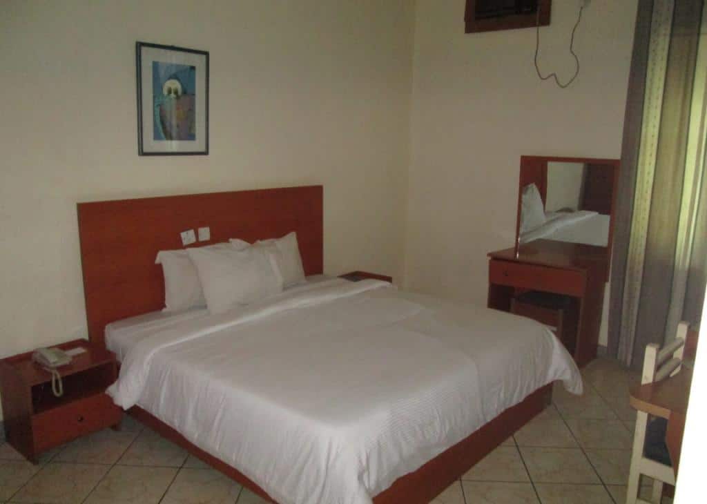 Book a Diplomatic Royale Room in Peace Haven Hotel in Wuye, Abuja Nigeria.Peace Haven Hotel is truly an haven on earth. The hotel is strategically situated atPlot 112, Gidado Idris Street, Wuye District, Zone 2, Abuja, Nigeria.A calm and serene area in Abuja and few kilometres from the Nnamdi Azikwe international airport. Leisure facilities offered by the hotel include a bar/lounge offering various alcoholic and soft drinks, a restaurant serving the best of local/continental dishes and an outdoor pool.