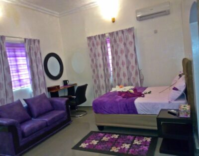 Book an Executive Room in Allen Suites in Enugu Metropolitan Area, Enugu State, Nigeria. Allen Suites is a luxury hotel located atNo 4 lobito Cresent off Nza Street independent Layout, Enugu, Nigeria. The hotel offers modern accommodation to guests The nearest airport is Akanu Ibiam International Airport, Enugu, away. Guests will enjoy the culture, tourism, and beautiful people of EnuguEach room at Allen Suites has a sofa, a private bathroom, a study desk, an air conditioner, a sit-out balcony, a refrigerator, a flatscreen TV, and a king-sized bed. Also available at the hotel are a kitchen