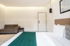 Relax and rejuvenate yourself in our executive suite with a king size bed and luxurious amenities. The room is equipped with state of the art technology, a modern desk and chair workspace.