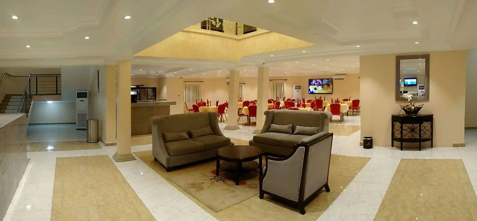 The Hotel which was opened on the 19th of December 2015 boasts of an ultra-modern kitchen guaranteed to produce international and national cuisines 24/7, an in house bar offering a wide range of drinks, a Restaurant, a SPA that incorporates a massage parlor, barbing saloon and hair styling. We offer you an unforgettable customer service experience with warm and friendly staff to give you the best of hospitality services.