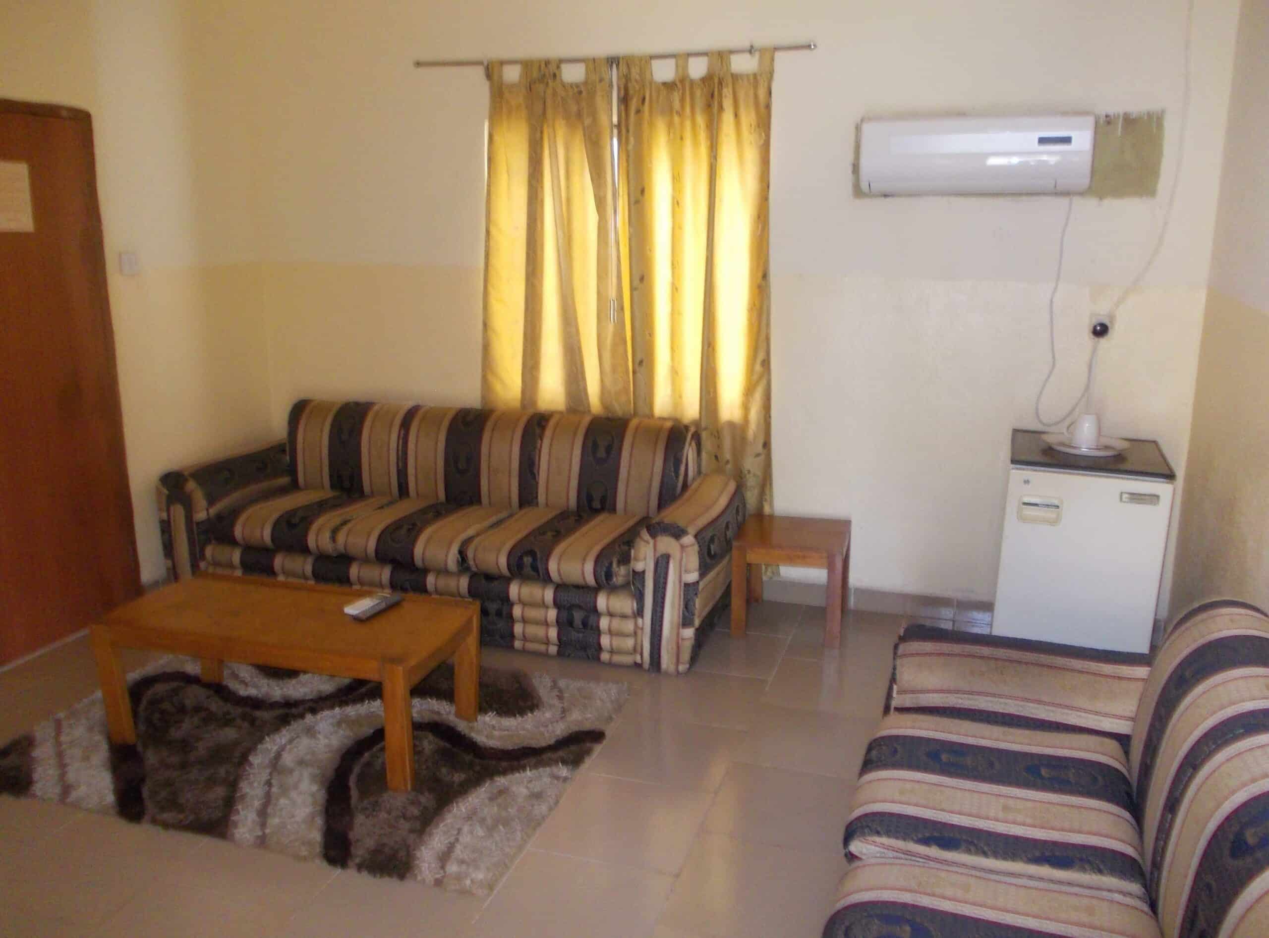 Book a Luxury Double Room in Borno Hotel in Zaria, Kaduna State, Nigeria. Like most of our favorite hotels in the north, Borno Hotel in sunny Zaria, is a powdered yellow and white haven. Accommodation options range from rooms to suites and the hotel offers complementary internet access. Along with well-sized beds and pressed sheets, rooms have air conditioning, a comfy armchair, center table, mirror, refrigerator, television and a relaxing ambience. Suites are tiled and have a center rug for that luxurious touch and tasteful setting. 24 hour electricity is assured and there is a bar/lounge for drinks and socializing. Security guards are on tap and there’s a beyond adequate parking space complete with a parking garage for added security of vehicles.
