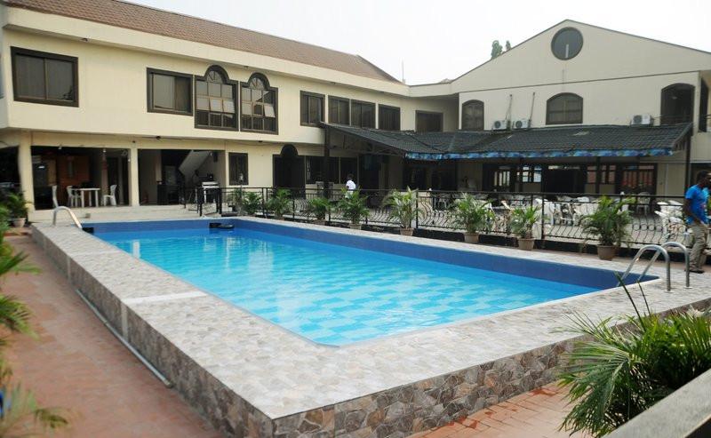 Book a Royal Plus Room in Benny Hotels, Festac, Lagos State, Nigeria. Situated 60 minutes away fromMurtala Muhammed International Airport , Benny Hotels is a deluxe hotel is sited atPlot 641 First Avenue, Festac Town, Lagos . This hotel is appropriate for business and leisure travellers. It boasts facilities like outdoor pool, pool bar, mini gym, sauna room and a conference facility.The hotel rooms are cosy and air conditioned. Each room is furnished with a living room, work desk/chair, mini bar, flat screen cable connected television set, refrigerator and king-size bed. The en-suite bathroom is equipped with a bathtub and complimentary toiletries. The rooms are categorised into Standard, Executive, Executive Luxury, Royal Rooms, Royal Plus, Executive Suite, Royal Suite, and Presidential Suite. Breakfast is served daily.Local and continental dishes are available at the restaurant. The pool bar and rooftop lounge are well stocked with assorted wines and other beverages. Barbeque, grilled fish, and Suya are also available. Guests can enjoy a relaxing dip in the swimming pool or take advantage of their free access to the gym and partake in fitness exercises in Benny Hotels’ fully equipped gym. An outdoor poolside and event space of over 200 capacity can be booked for social gatherings. A variety of services available on request is laundry, car hire, airport pickup and concierge. Parking space is ample and security is assured.