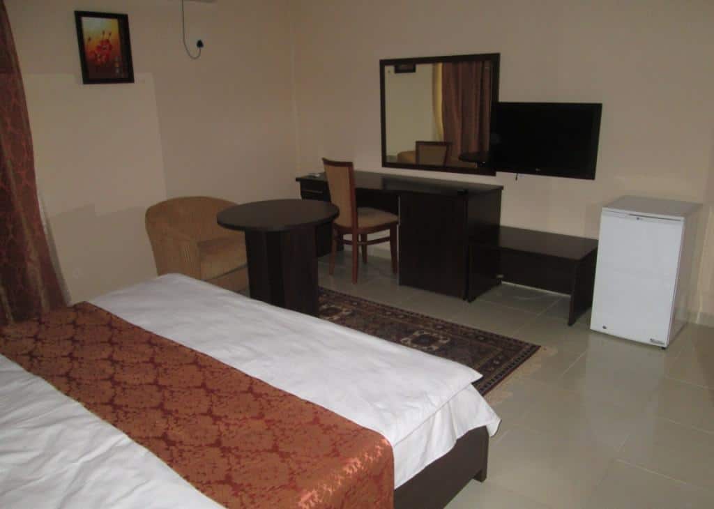 Book a Standard Room in Benue Metropolitan in Makurdi, Benue State, Nigeria. Benue Metropolitan provides easy access to guests. It is well-equipped and in a secure environment. Guests enjoy quality services from the well-behaved staff and good facilities in the accommodations provided. It is situated at10, Atiku Abubakar Way, Makurdi, Benue. Benue Metropolitan has provided exquisite lodging arrangements in Standard Room, Deluxe Room, Twin Bed, Suite, Executive Suite and Presidential Suite categories. The rooms are fitted with an air cooling system, a refrigerator, a study desk, a sofa, a comfy bed, a makeup mirror, a flat screen TV with satellite reception and a private bathroom with a shower. Breakfast is served to guests at an additional charge.An event facility is available for holding social and corporate gatherings. The restaurant serves guests with delicious and satisfying meals. Alcoholic and non-alcoholic drinks are offered by the onsite restaurant. Guests enjoy free browsing with the Wi-Fi facility provided at Benue Metropolitan.Laundry/dry cleaning services can be arranged at a fee. Adequate parking space is available at Benue Metropolitan. There is a constant supply. Benue Metropolitan is guarded by a security guard.