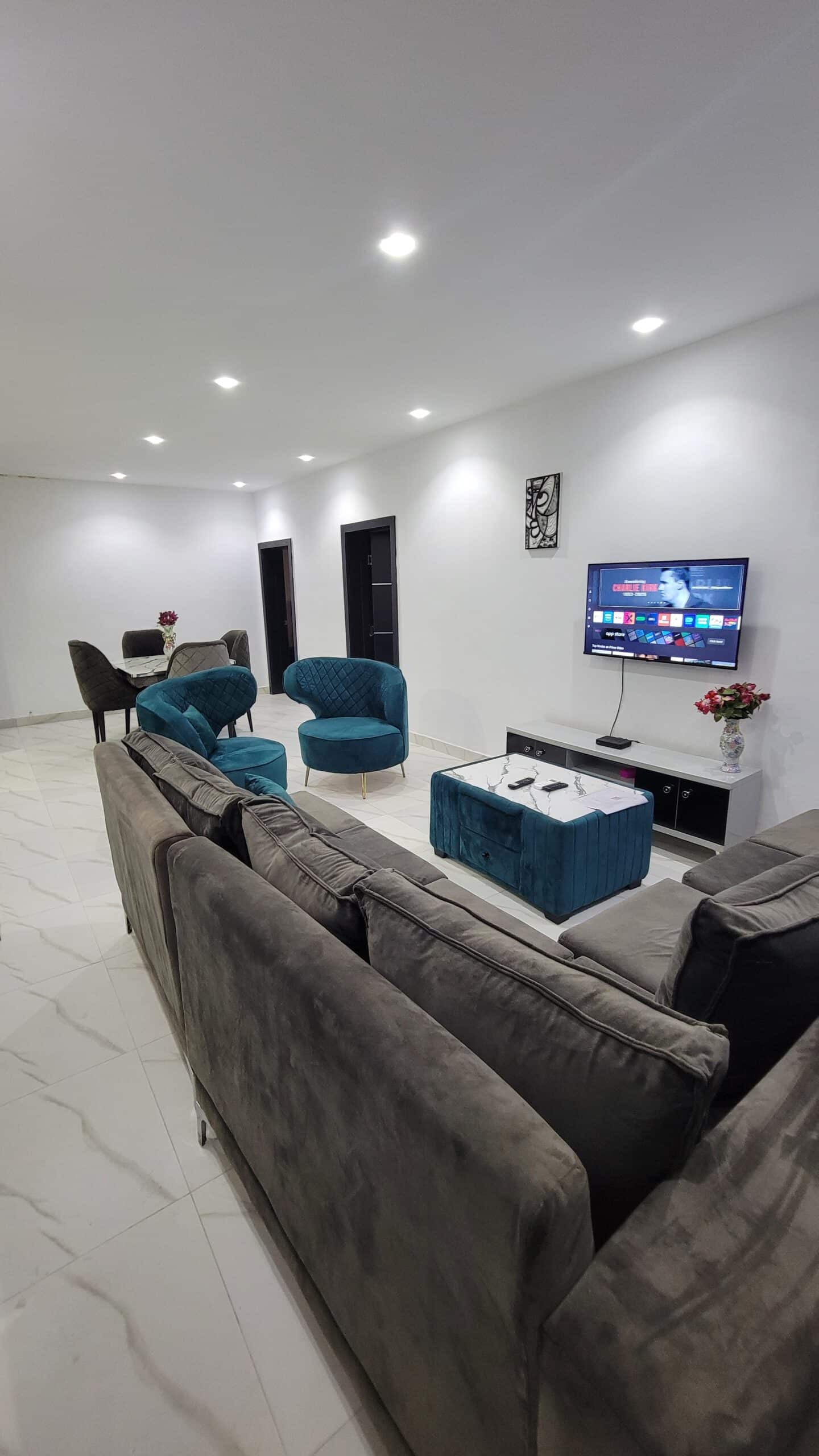 stylish 2-bed, 3-bath apartment offers AC, 24hr power, Wi-Fi, Netflix & Prime Video